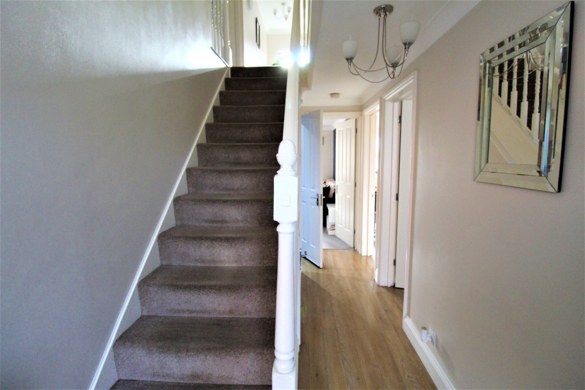 First floor you are met with a spacious landing with access to the Master ensuite bedroom with built in wardrobes, double bedroom with built in wardrobe, another double room with built in wardrobe, family bathroom.