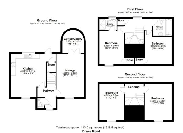 Bedroom 3 w: 3.05m x l: 4.02m x h: 2.5m (w: 10' x l: 13' 2" x h: 8' 2")