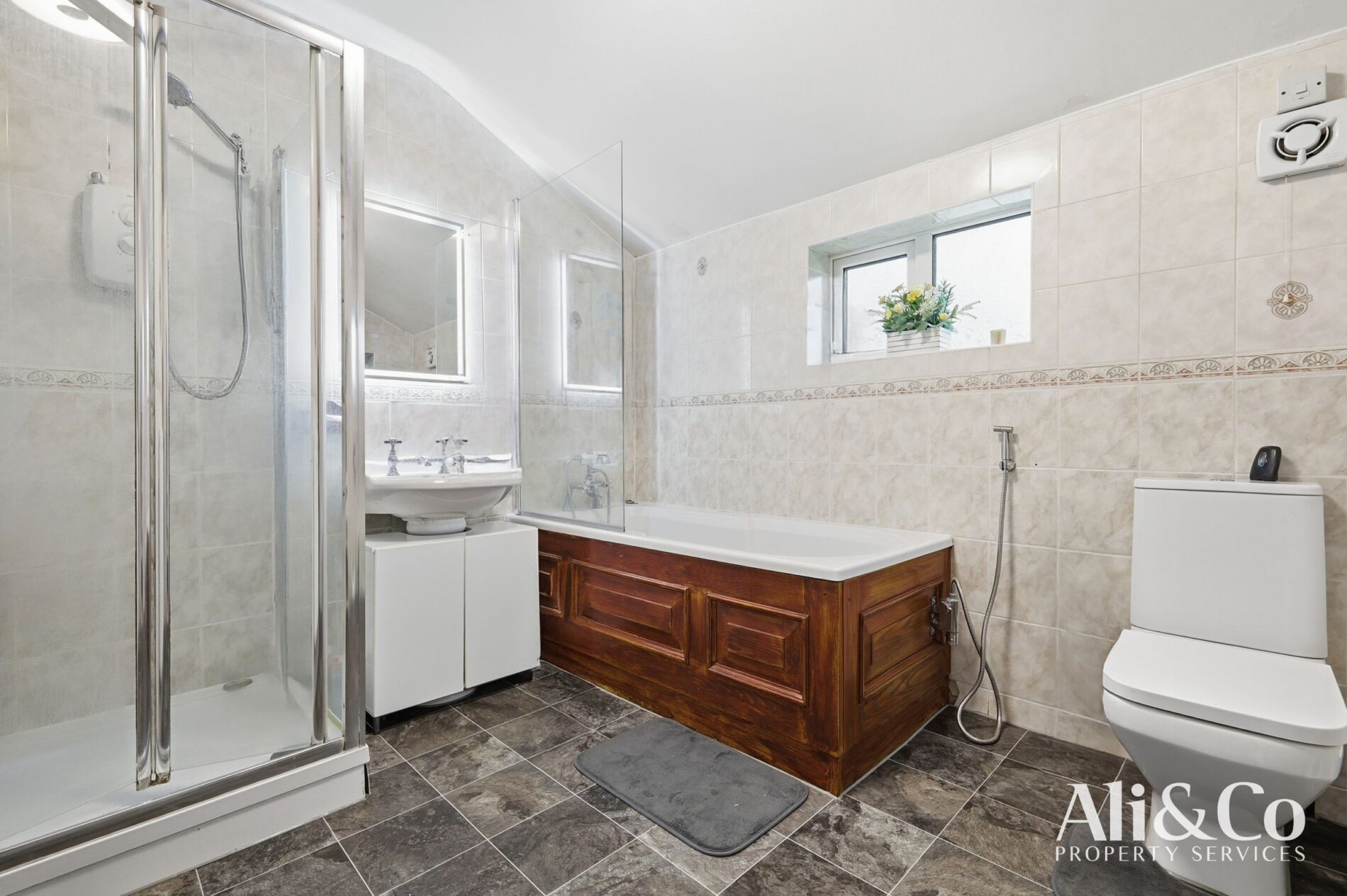 - Contemporary downstairs family bathroom