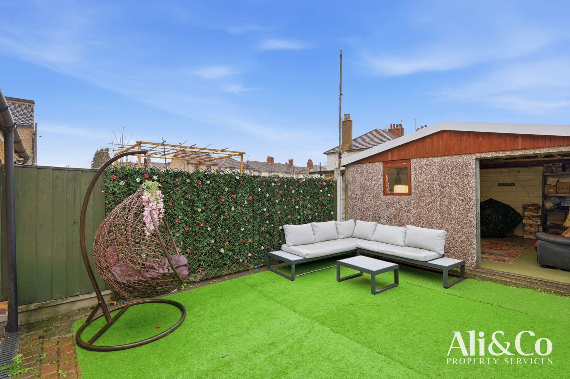 EXTERNALLY: Outside, the property benefits from a private garden and a large garage, perfect for storage or as a versatile additional space.