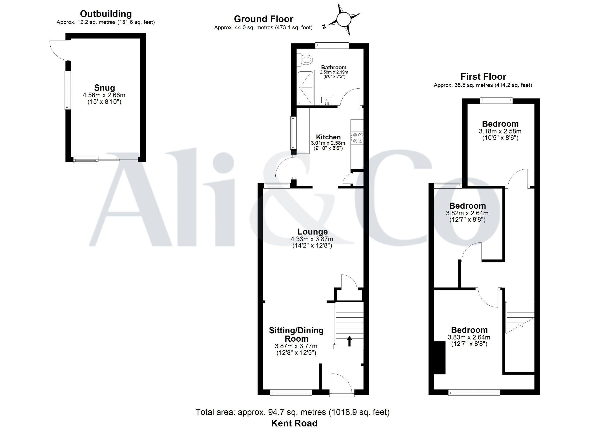 Lounge w: 3.87m x l: 4.33m (w: 12' 8" x l: 14' 2")