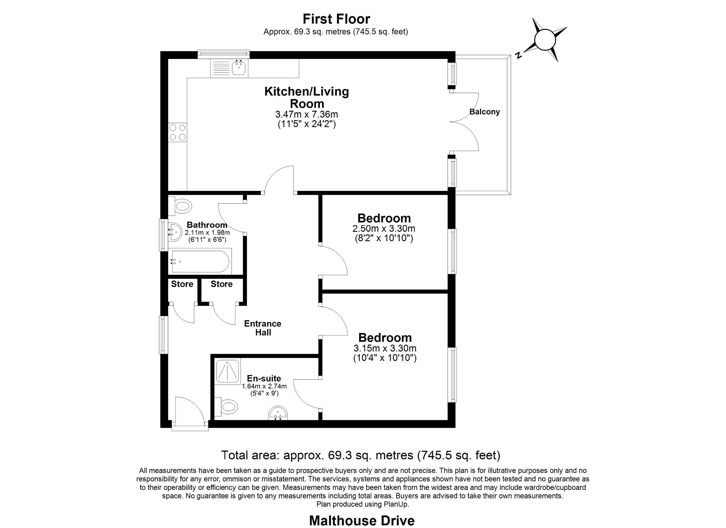 Bedroom 2 w: 3.3m x l: 2.5m (w: 10' 10" x l: 8' 2")