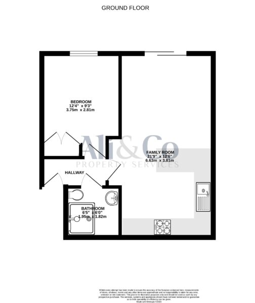 Kitchen/lounge w: 3.81m x l: 6.63m x h: 2.5m (w: 12' 6" x l: 21' 9" x h: 8' 2")